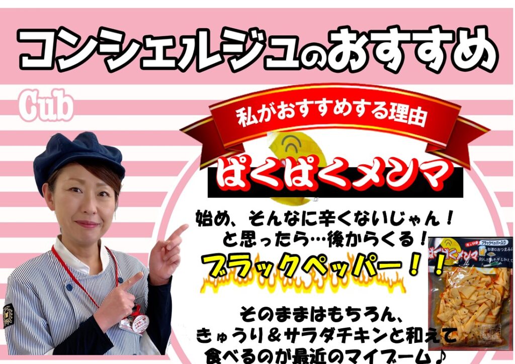 後からくるブラックペッパーの辛さがクセに!『ぱくぱくメンマ』