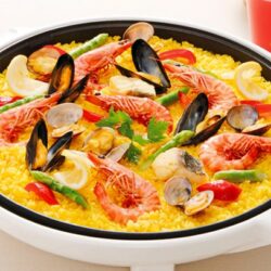 お好みでレモン汁をかけるとおいしくなります。 炊飯器で作る場合は、あさり100g、えび100g、パプリカ40gで「地中海パエリア」を利用し、お米3合を炊いてください。