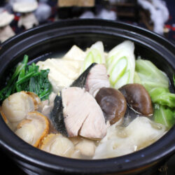 だし汁のうま味が際立ったスープで煮込むので、素材のおいしさをしっかり味わえる鍋料理が楽しめます。 **ベビーホタテのほか、牡蠣でたべていただいてもおいしいですよ。