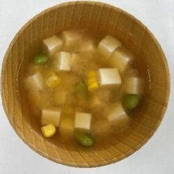 【きのうのごはん】豆腐と枝豆の味噌汁 2022.08.21 きのうのごはん スープ・汁物 【きのうのごはん】豆腐と枝豆の味噌汁 印刷 お気に入り 作業時間 15 minutes mins 分類 ラベルスープ・汁物Cuisine ラベルメーカーレシピ 分量 4 人前 材料 1 丁 豆腐 (太子国産きぬ推奨)(小1丁150g)80 g ゆで枝豆(むき)1/3 本 とうもろこし (青森県産とうもろこし推奨)(可食部50g調味料650 ml だし汁2 大さじ 味噌 作り方 豆腐はさいの目に切る。とうもろこしは外皮を除いて、粒だけを包丁でこそげとる。鍋にだし汁を沸かし、豆腐ととうもろこしを加える。火が通ったら、味噌を溶き入れ、枝豆を加える。 Notes※粒々食感が楽しめる味噌汁です。 Keyword みそ汁, 豆腐, 枝豆, とうもろこし, 太子国産きぬ