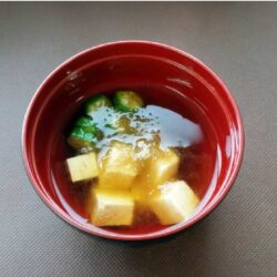 【きのうのごはん】豆腐とおくらのすまし汁 2022.08.21 きのうのごはん スープ・汁物 【きのうのごはん】豆腐とおくらのすまし汁 印刷 お気に入り 下準備時間 10 minutes mins 作業時間 10 minutes mins 分類 ラベルスープ・汁物 分量 4 人前 材料 200 g 木綿豆腐60 g おくら (6本)15 g とろろ昆布550 ml だし汁1 大さじ しょうゆ 作り方 豆腐は1.5cm角に切り、オクラは5mm幅に輪切りにする。鍋にだし汁としょうゆをいれて火にかけ、1をくわてさっと火を通す。器にもり、とろろ昆布をのせる Keyword 豆腐, オクラ, 木綿豆腐, とろろ昆布, すまし汁