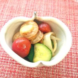- ①に②の野菜とホタテを漬けて、冷蔵庫で一晩漬けたらできあがり。