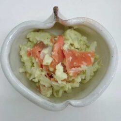 - 食べやすい大きさに切ったスモークサーモンを③に加えてさっと混ぜる。