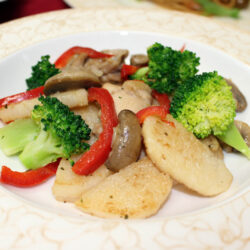 - マッシュルームは2~3等分に切る。パプリカは斜め細切りにする。