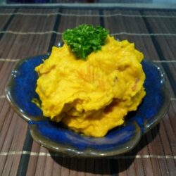 - 柔らかく煮えたかぼちゃをマッシャーで潰し、マヨネーズ、塩・こしょう、プレーンヨーグルトを加えよくまぜ、③と混ぜ合わせて出来上がりです。
