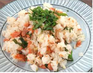 青じその風味と焼きあごをきかせた、あっさりとした紅鮭チャーハン