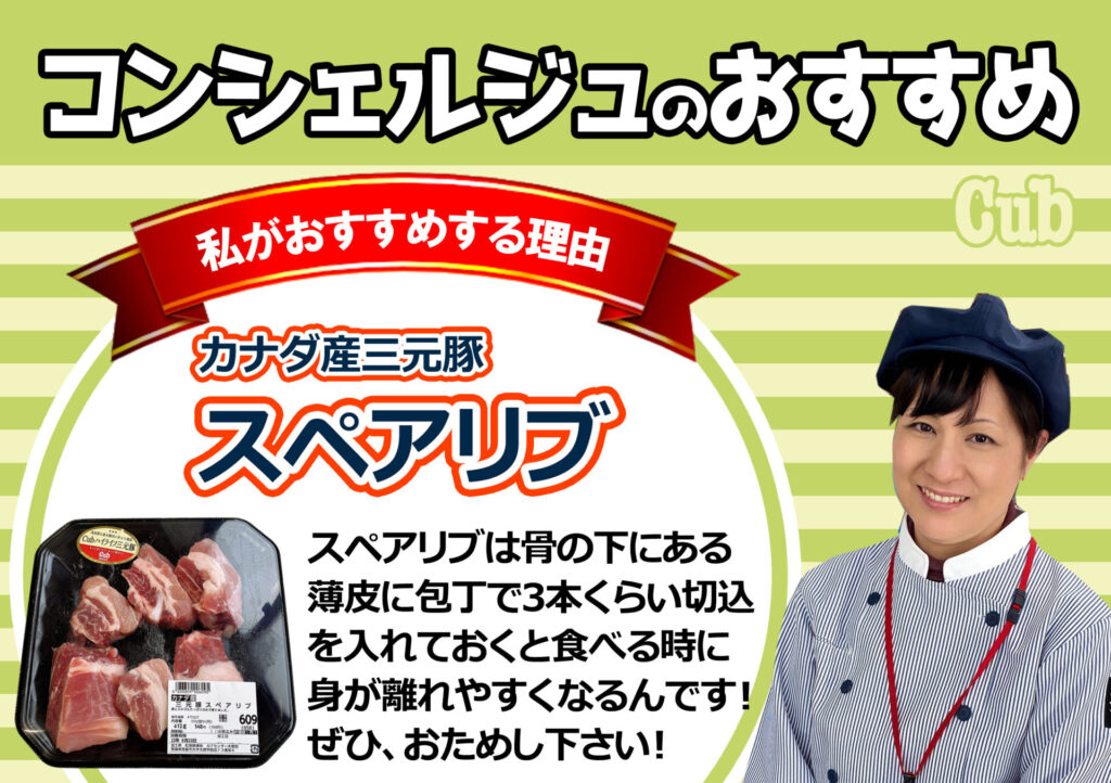 焼く前のひと手間で断然食べやすくなります!精肉コーナーの『カナダ産三元豚 スペアリブ』