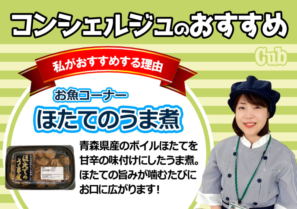 青森県産ボイルほたての旨みが口に広がる!鮮魚コーナーの『ほたてのうま煮』