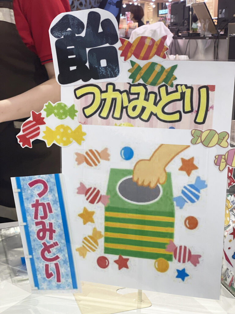 まず、五所川原店独自の取り組みとして、飴のつかみどりを準備しました。