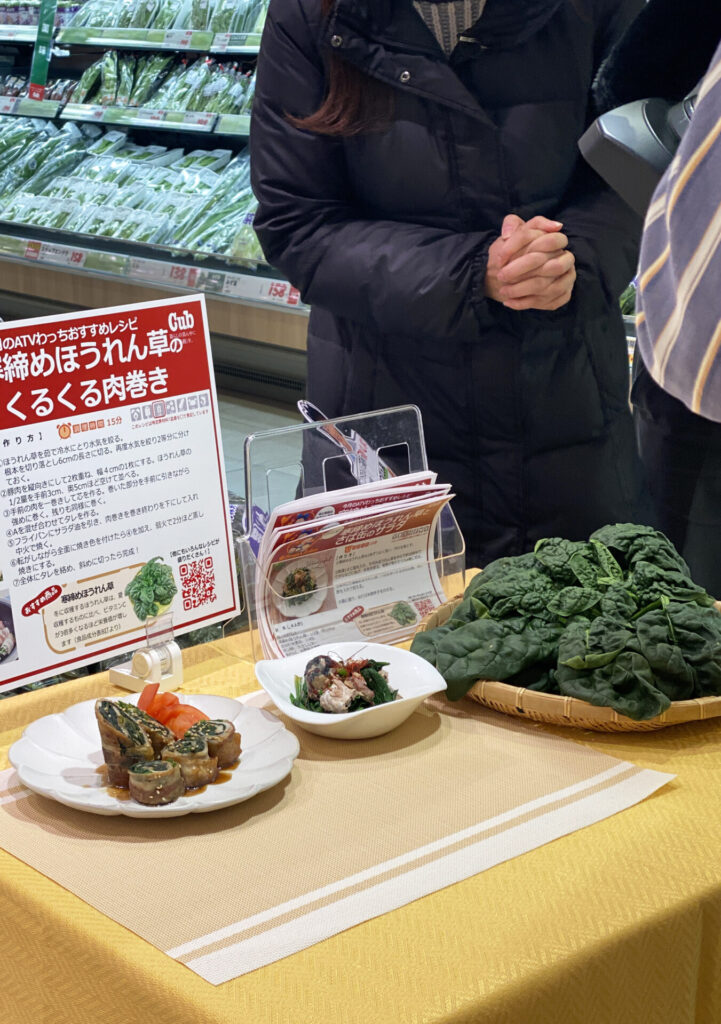 今が旬の野菜「寒締めほうれん草」とお手頃価格なのにおいしい「カナダ産三元豚バラ肉」です!
