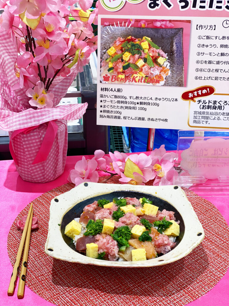 どこか難しく感じてしまう海鮮チラシ寿司も、まぐろのたたきやお魚屋さんの卵焼きを