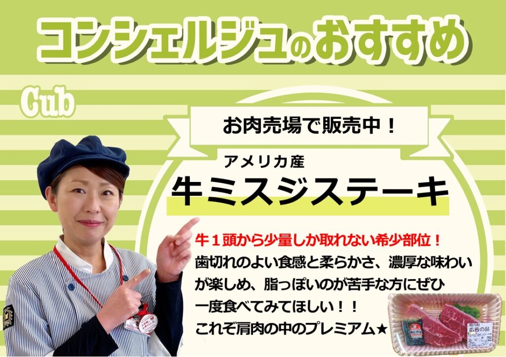 柔らかく濃厚な味わい!『アメリカ産 牛ミスジステーキ』