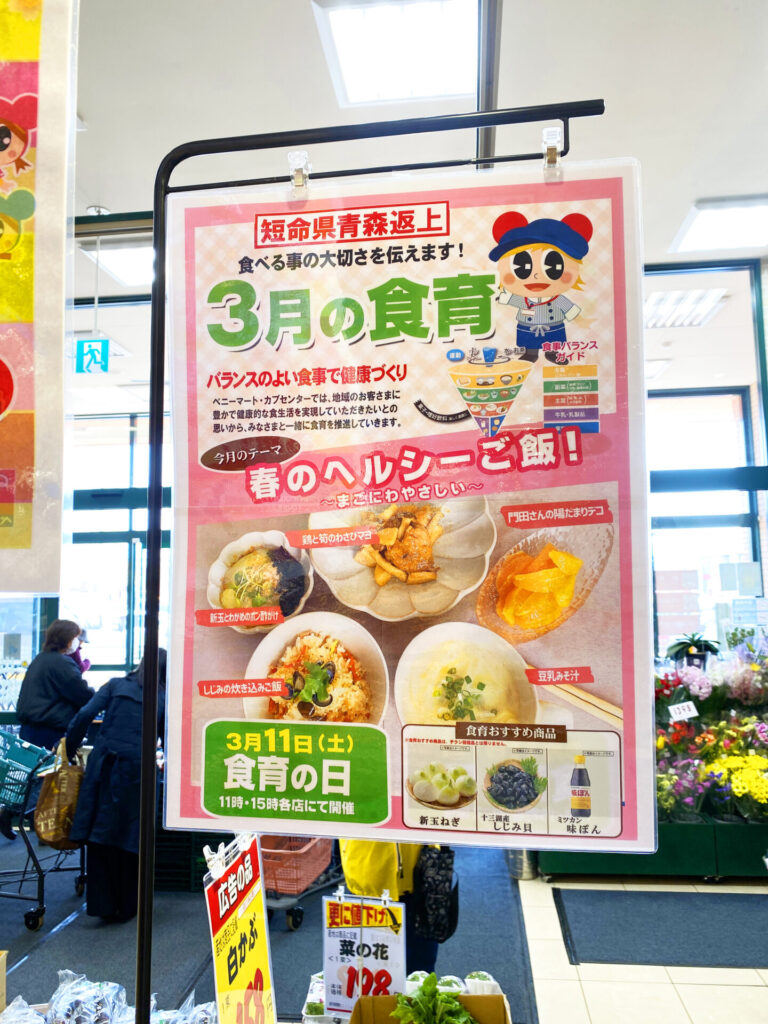 今月の食育活動報告は、青森市のベニーマート観光通店の様子をご紹介します😆