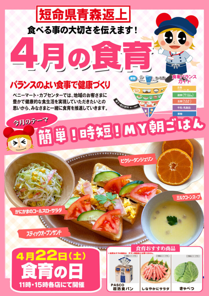 2023年4月の「食育の日」情報! 4月22日(土)11時と15時に実施します。