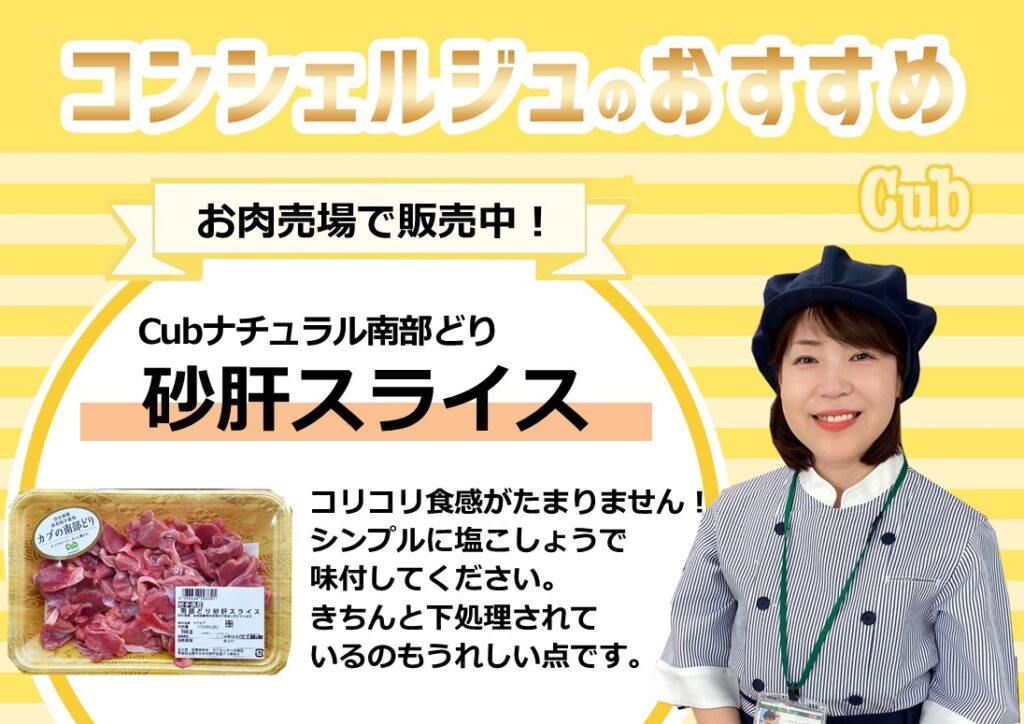 塩こしょうで炒めて食感を楽しんで!『Cubナチュラル 南部どり 砂肝スライス』
