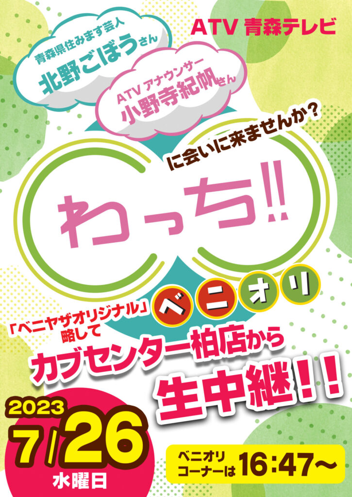 2023年7月26日(水)のATVわっち!!中継は、カブセンター柏店からお届けします。 お楽しみに!