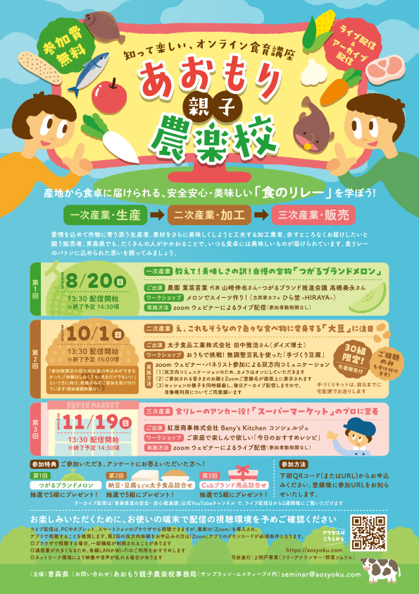 青森親子農楽校は、青森県が家庭での食育を推進するために始めたオンラインの食育講座です。