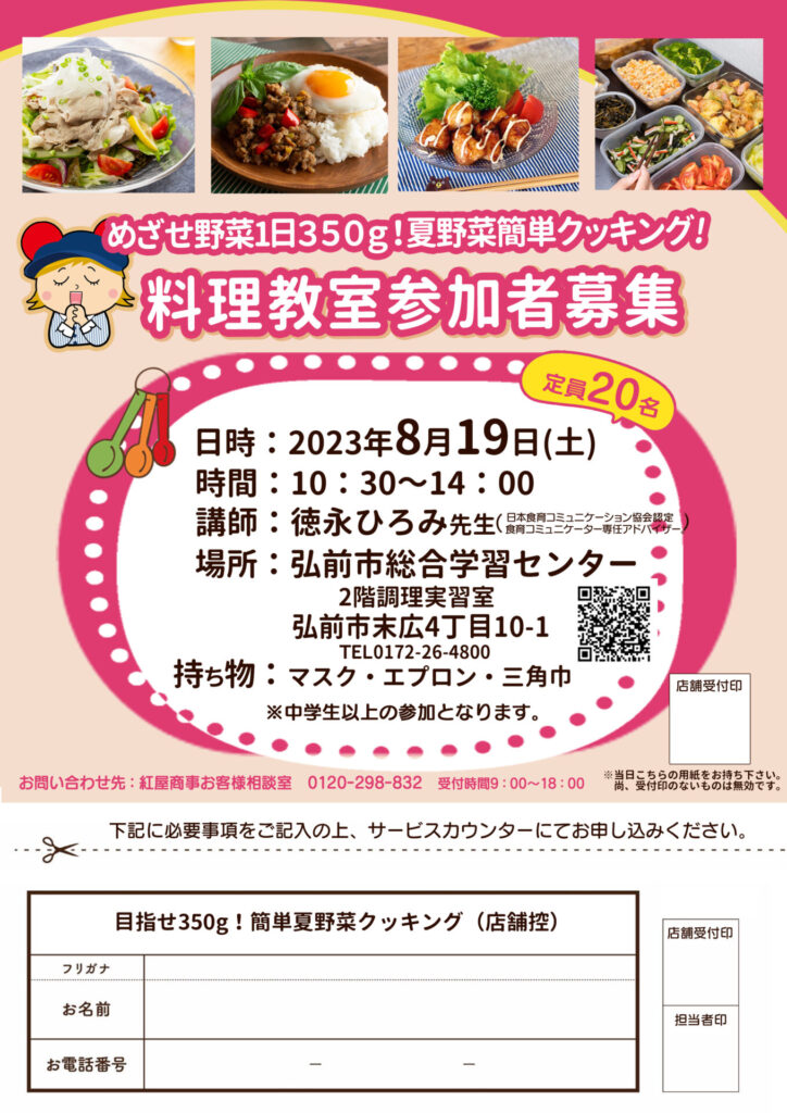 8月19日(土)にお客様を対象とした料理教室を開催します。🥗🥘