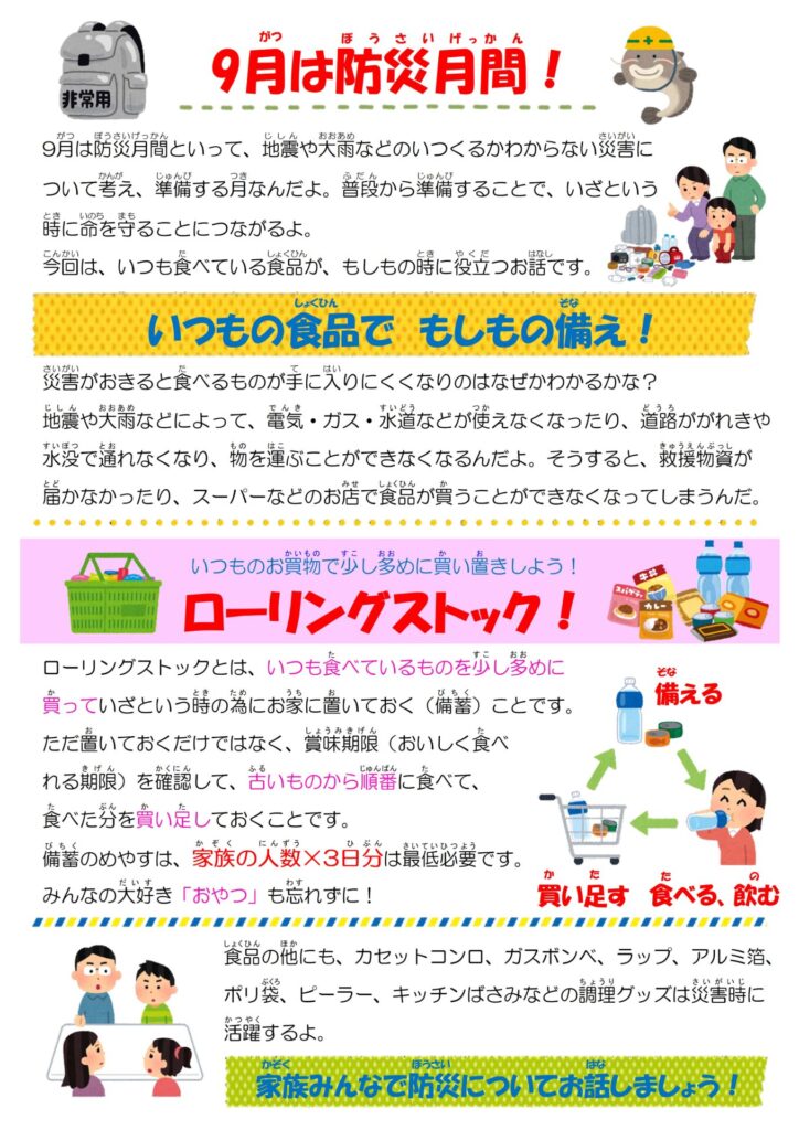 また、災害に備えてできることを考えてみてね。