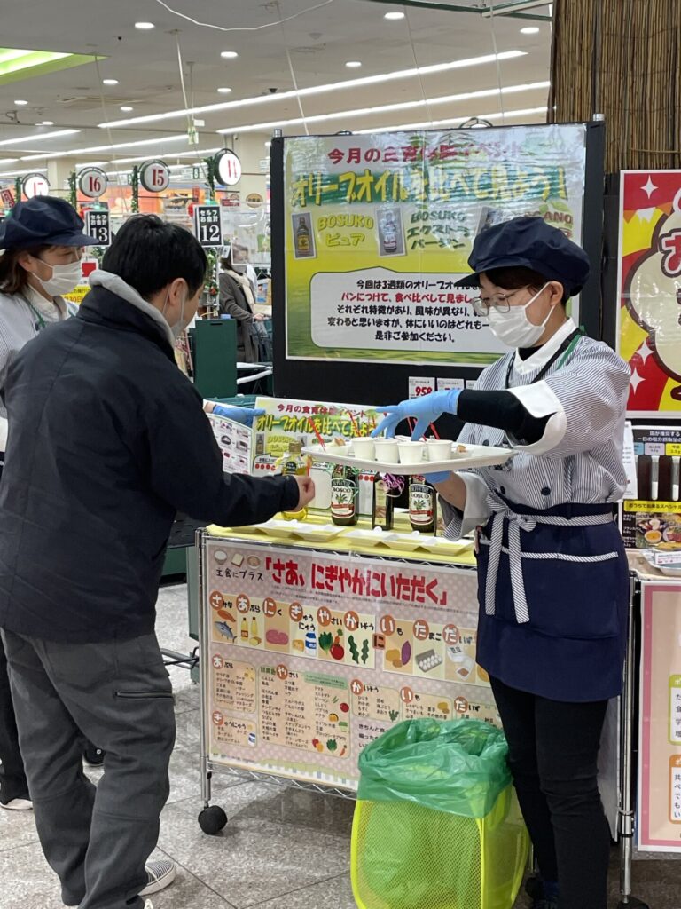 紹介したレシピ内で使用したオリーブオイルを含めた3種類のオリーブオイルの食べ比べを実施しました♪
