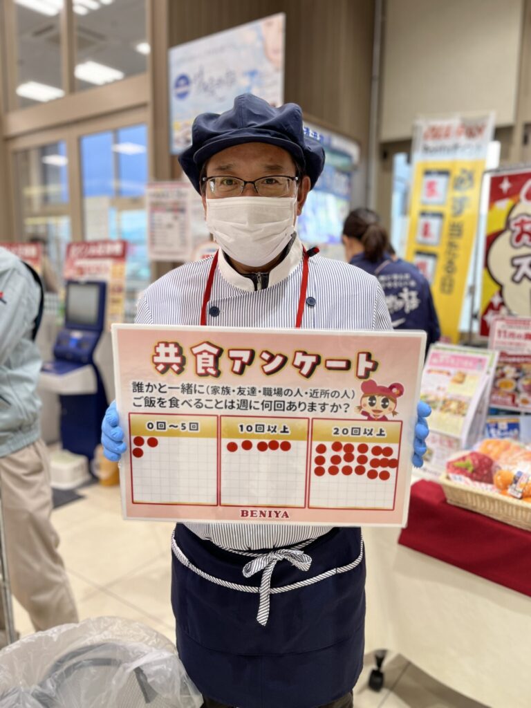 共食のアンケートでは、夜は食べるけど昼は一人のことが多い、朝は食べないかも
