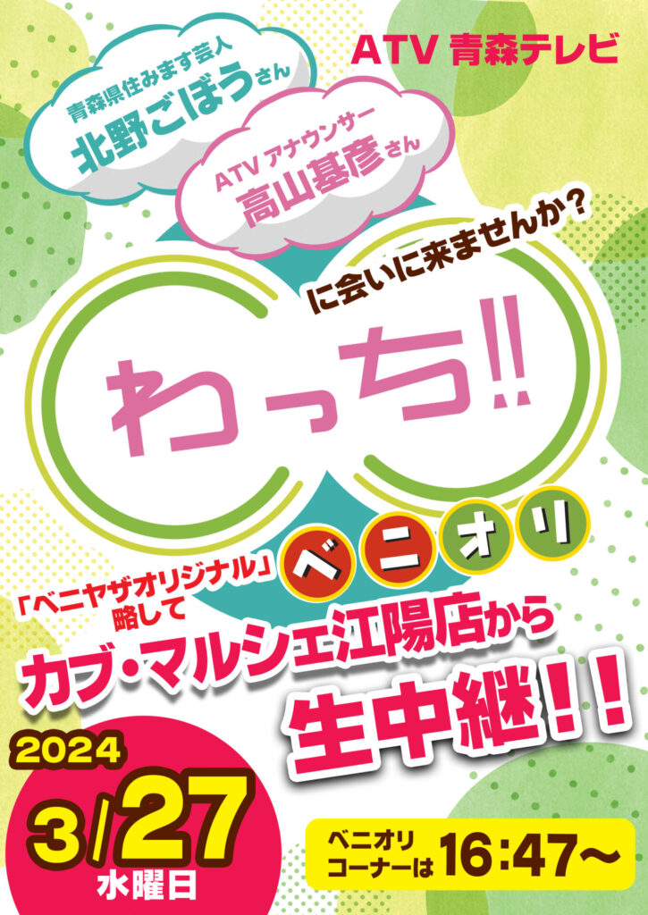 3月27日(水)のわっち!!は八戸市のカブ・マルシェ江陽店から中継です!!お楽しみに