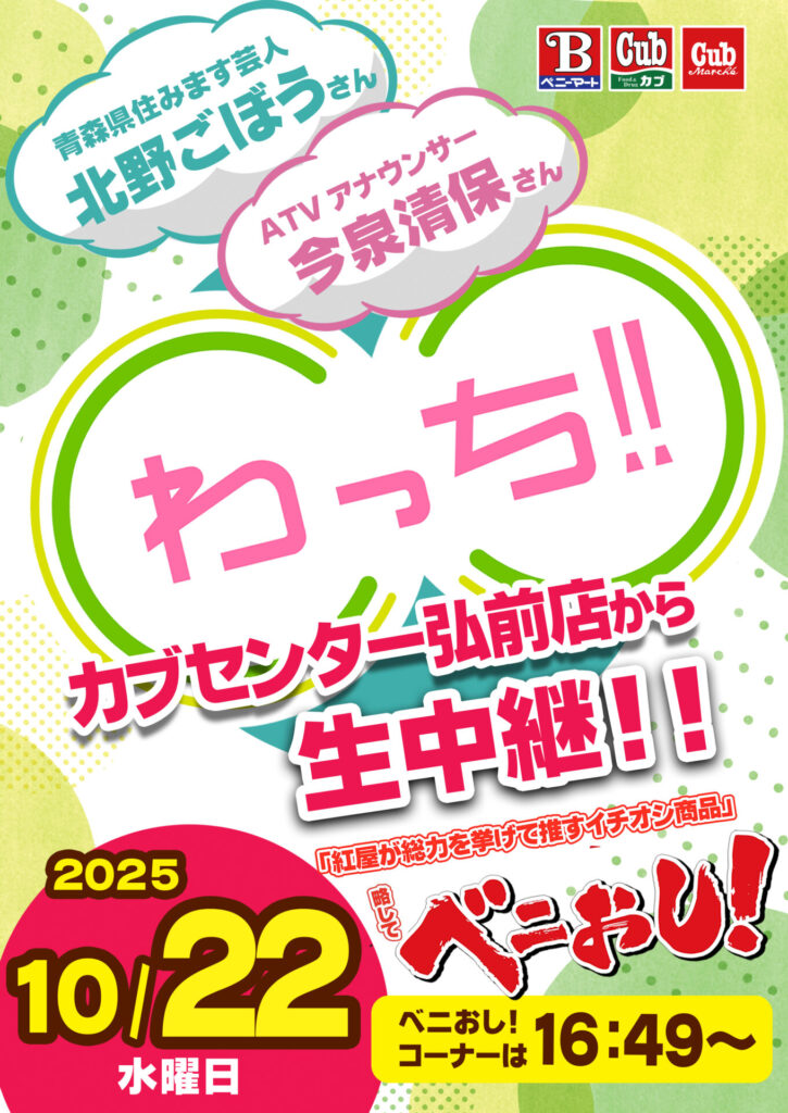 10月22日(水)のATVわっち!!中継はカブセンター弘前店から