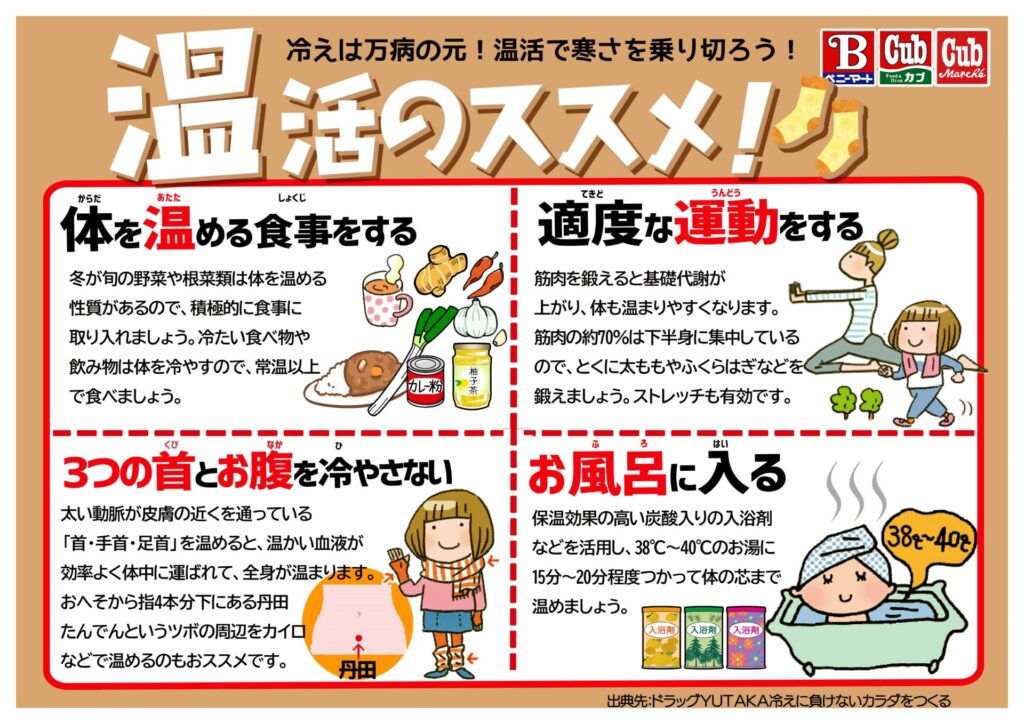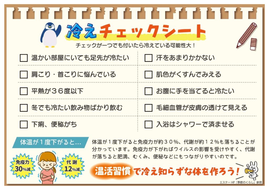 日頃から体を温める習慣を身に付け基礎体温を上げて、冷えによる体調不良などを防ぎましょう!