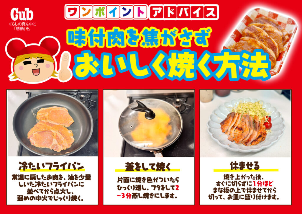 味付け肉は、焦がさずおいしく焼く方法をご紹介😆