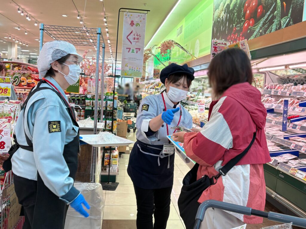 大野店では「くらし良好 たまごスープ」を活用した【春キャベツとトマトのたまごスープ】の試食を実施♪
