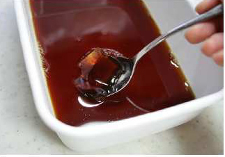 ポン酢と水を小鍋に入れ、沸騰したら火を止め、ゼラチンをふりいれ混ぜて溶かす(電子レンジの場合は、耐熱容器に入れ、ふつふつしてくるまで加熱した後ゼラチンを入れる)