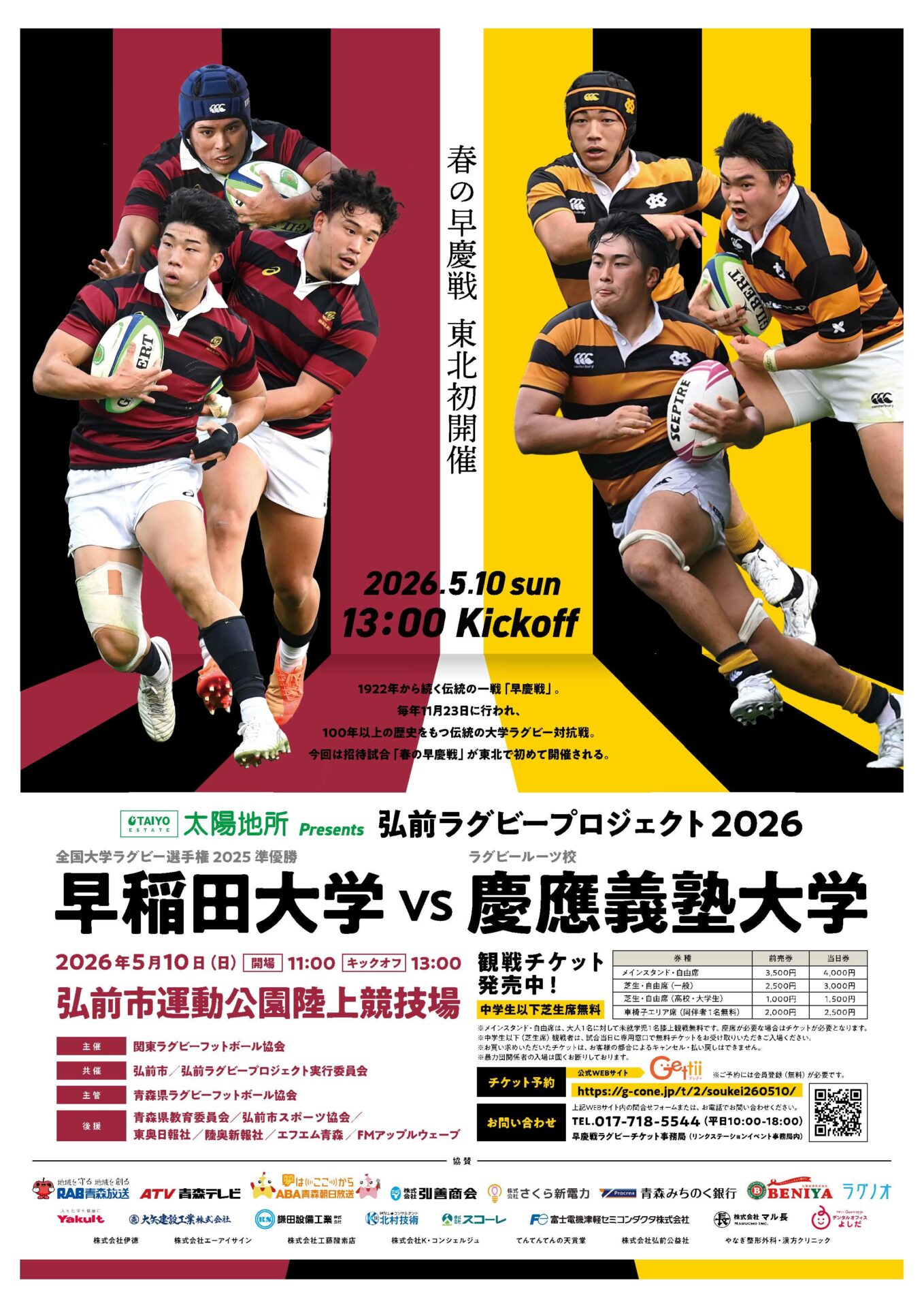 ラグビーの早慶戦の招待試合は、東北初のイベントだそうです。早稲田大学及び慶応大学は、両チームとも関東対抗戦に所属しており、11月23日の勤労感謝の日に早慶戦が東京で行われます。